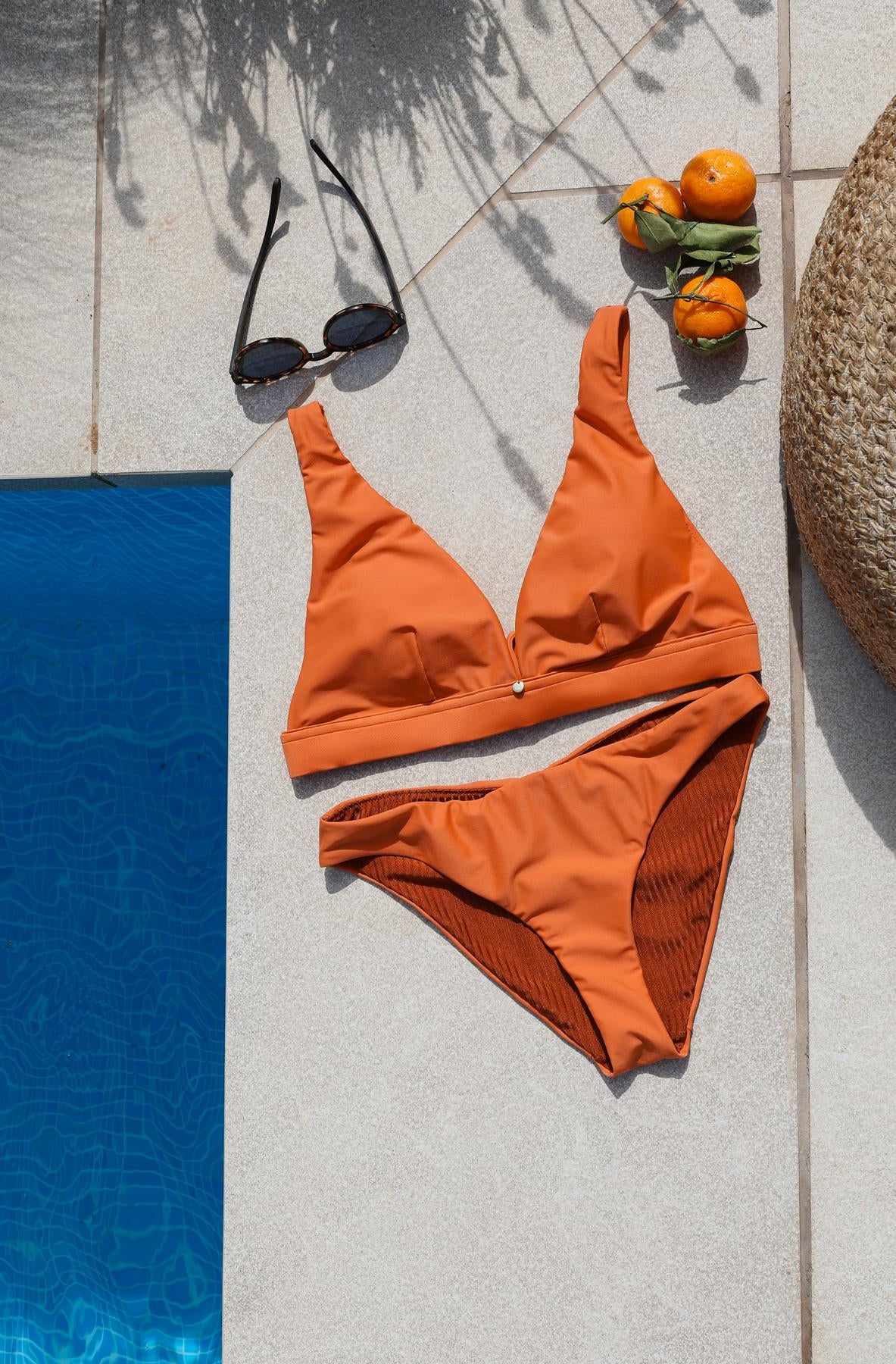 Die Farben der neuen Kollektion sind schön mit denen der vorigen Kollektion zu kombinieren. Orange und Rostrot-Töne harmonieren wunderbar mit dem Flower-Print und auch dem zarten Gelb der Bikinis.